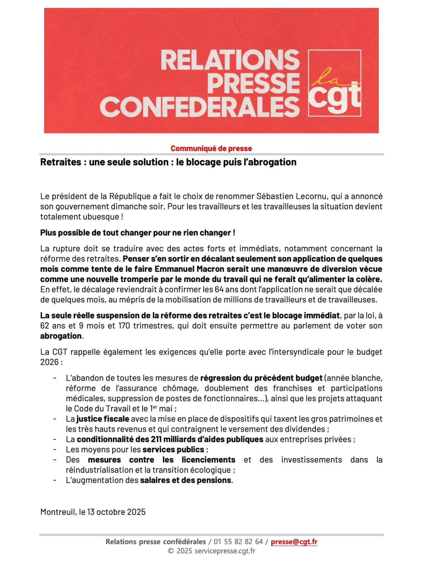 Accueil Informations à la une Relations Presse Confédérales : la CGT Tweeter Partager Partager www.cgt.fr 16 octobre 2025