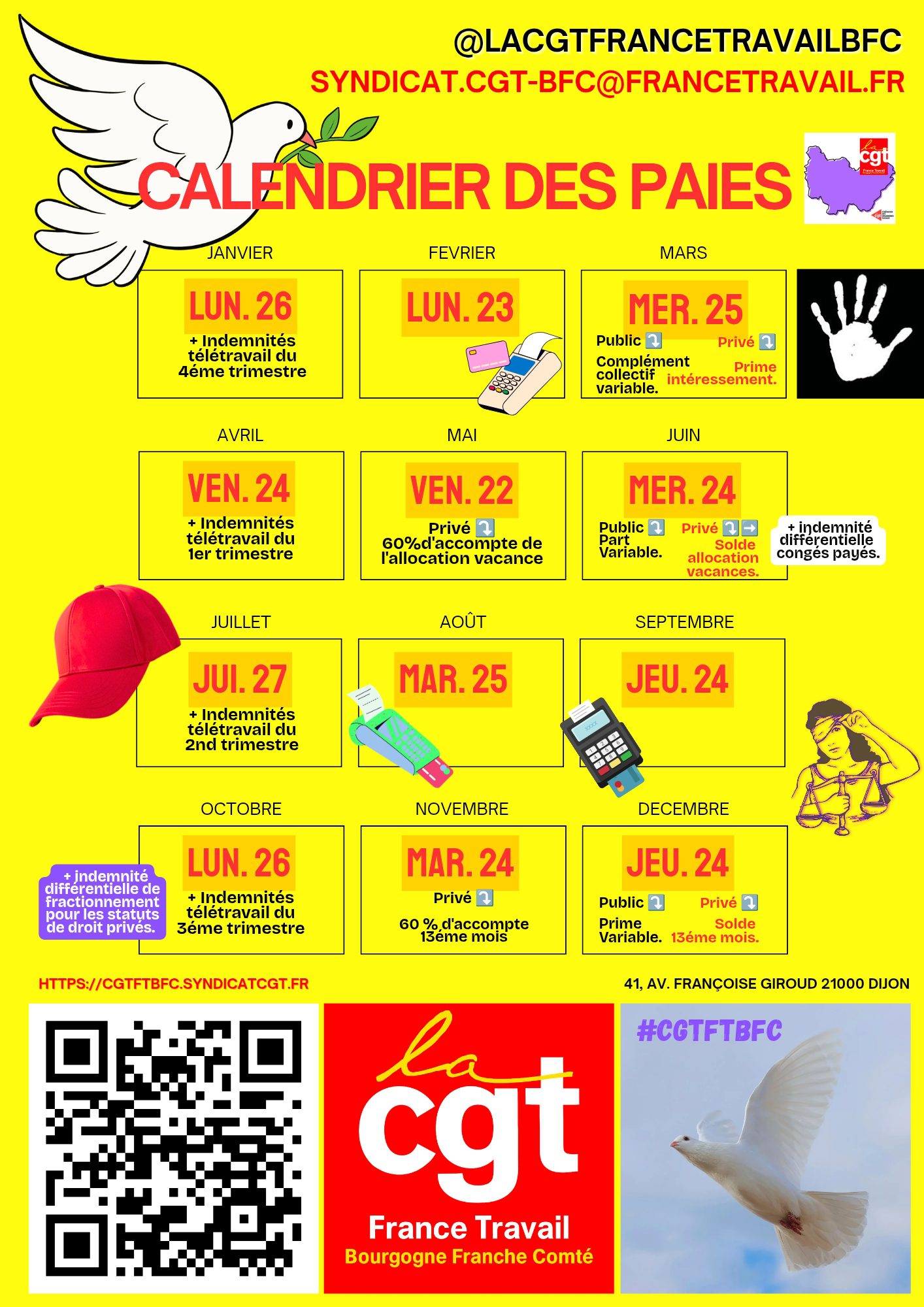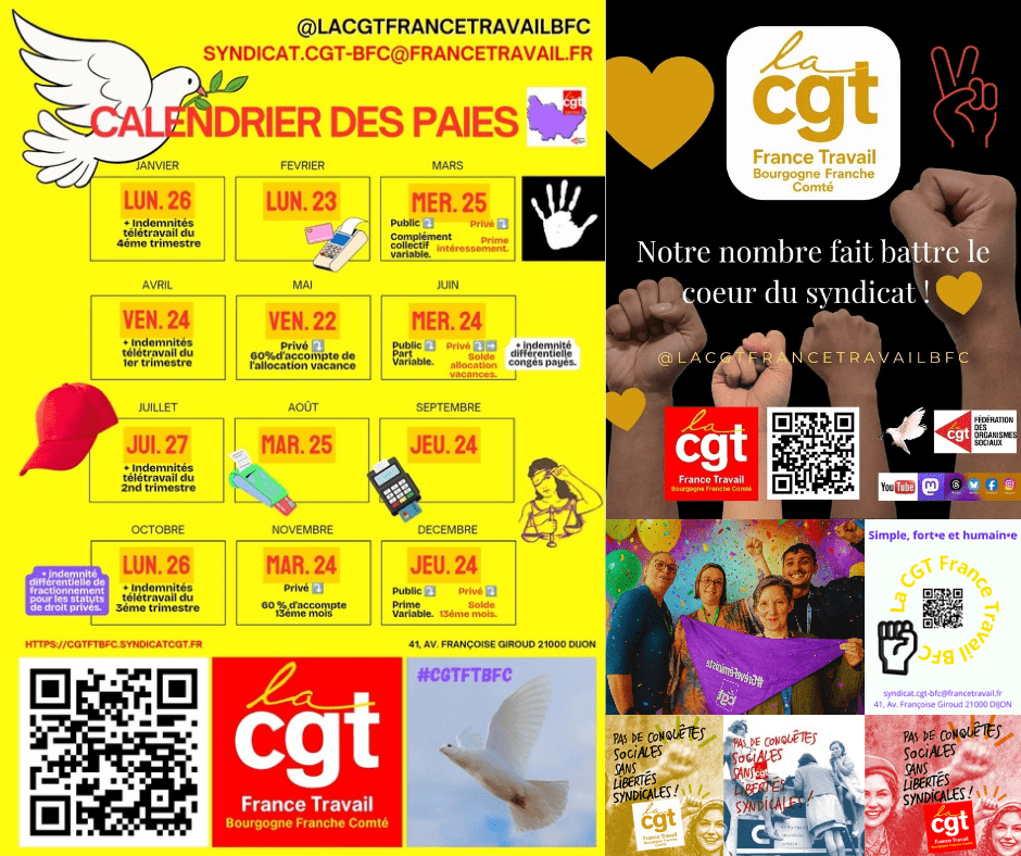 Le syndicat régional de la CGT France Travail Bourgogne-Franche-Comté met à votre disposition le calendrier complet des dates de versement des paies pour 2026.