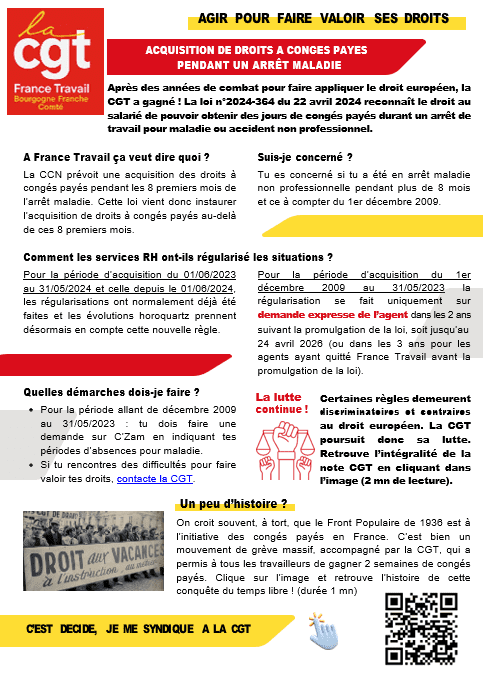 Informations du syndicat de la CGT France Travail BFC